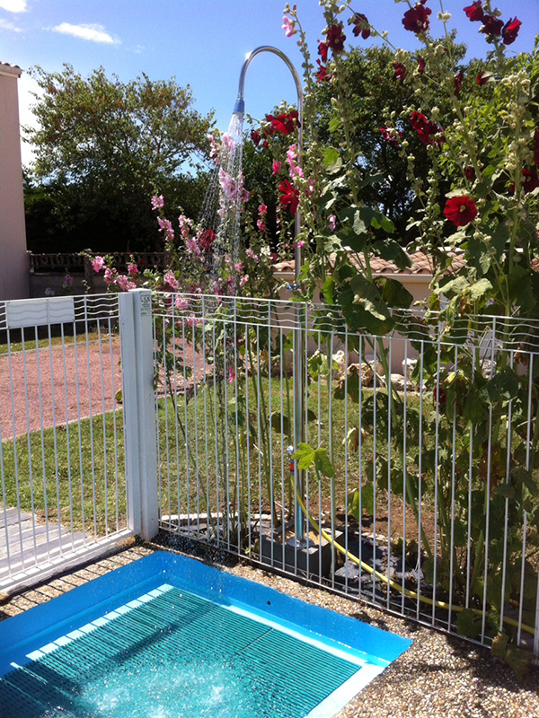 Après un mois de juin très ensoleillé où nos client ont pu profiter pleinement de la piscine (eau à 29 °), Nous attendons maintenant notre clientèle de Juillet. Nos clients habituels pourront remarquer que cette année encore nous avons pu faire quelques aménagements afin de parfaire le confort de tous. A titre d’exemple, on peut voir sur la photo qu’une belle douche est en place à l’entrée de la piscine. Nous affichons complet pour la période du 19 juillet au 16 août. Il reste encore quelques disponibilités en dehors de cette période.
